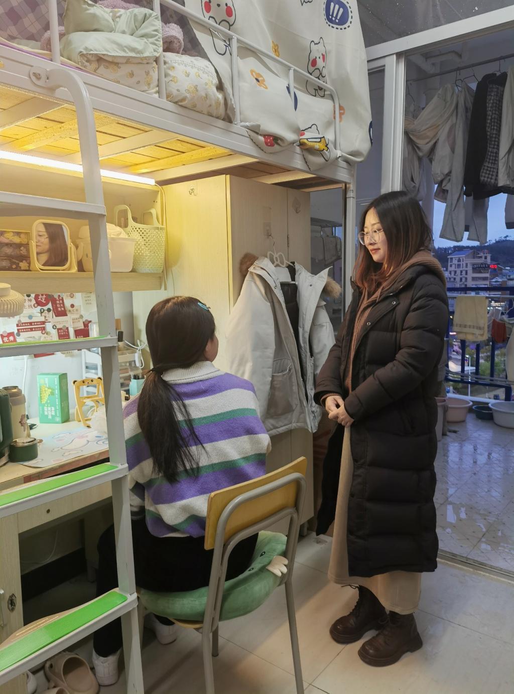 走访寝室期间,支部每位师生党员一方面致力于帮助同学们提高消防安全意识,提醒同学们不能在寝室私拉电线,违规使用大功率电器。同时,提醒同学们要注意食品安全问题,开学期间切勿暴饮暴食,注意规律饮食,营养均衡;另一方面,支部党员还非常关心学生的学习和生活,与同学们在宿舍交流谈心,详细了解同学们的寒假生活、身体健康状态、返校后有何困难等,尽力帮助他们解决问题。