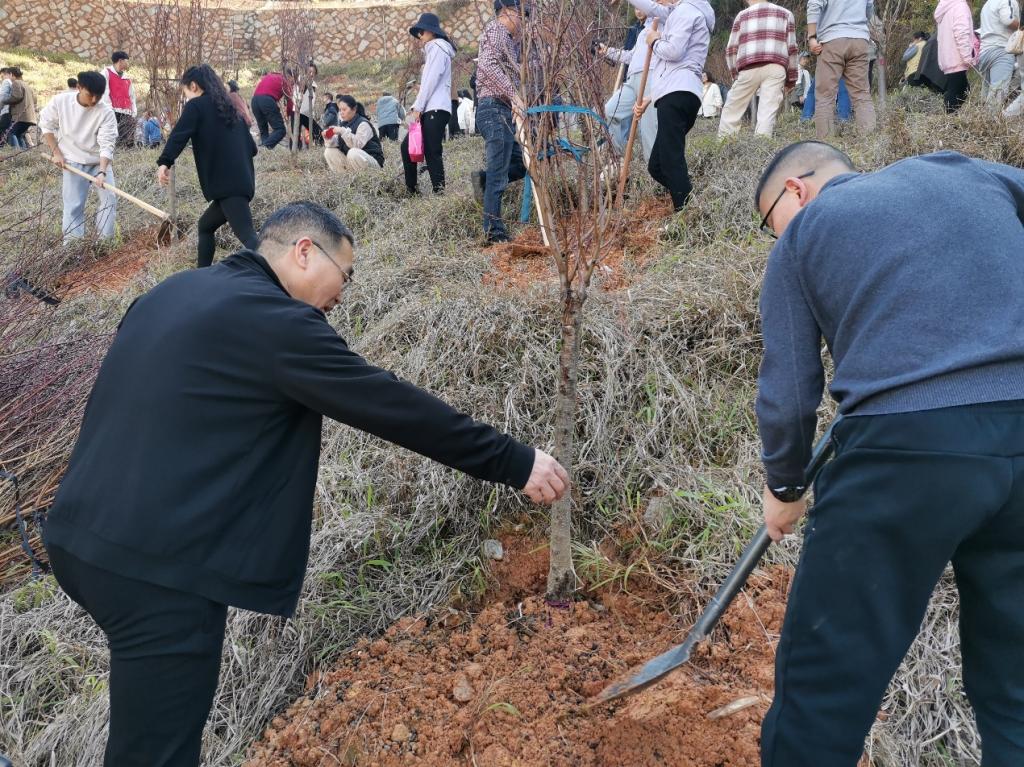 活动过程中,师生们满怀热情,配合无间,共同致力于绿化校园的行动。他们忙碌的身影在校园的每个角落都可见,将一棵棵树苗细心地植入新挖的土坑中。大家挥动锹铲,铲起新鲜的土壤,将树苗稳稳地扶正,再培土踩实,确保每棵树苗都能稳稳地扎根。随后,他们又忙着围堰浇水,让每一棵小树都能得到充足的滋润。教师党员团结协作,共同种下了25碧桃树,为实现校园的和谐美丽和育人环境的优化添砖加瓦,在大家的共同努力下,校园内的花草树木更加繁茂,道路更加整洁,建筑更加美观。