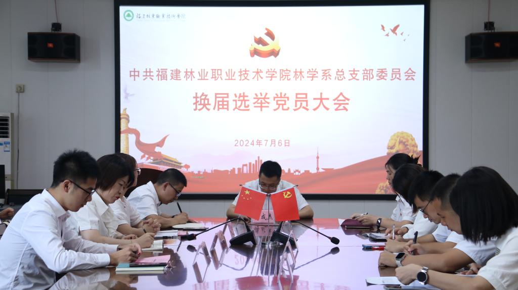 7月6日下午,林学系党总支换届选举党员大会在林学楼四楼会议室隆重举行,会议在庄严的国歌声中拉开序幕。系部全体党员参会,会议由党总支书记傅成杰同志主持。