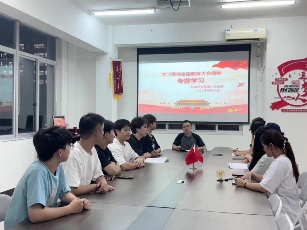 2024年9月9日至10日,全国教育大会在北京顺利召开,习近平总书记发表重要讲话。会议着重强调了教育是支撑国家强盛、党的事业兴旺发达的基石。为深入学习贯彻全国教育大会精神,林学系学生第一党支部迅速行动,于2024年9月18日开展专题学习。此次学习由叶知勇老师主持,支部全体同学参与。