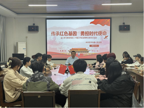 通过此次党日活动,不仅进一步加深了同学们对党的二十届三中全会精神的理解和认识,还激励着同学们在今后的学习生活中,以实际行动传承红色基因,勇担时代使命,践行党的二十届三中全会精神,为实现中华民族伟大复兴的中国梦贡献自己的青春力量,让红色基因在新时代焕发出更加耀眼的光芒,让时代使命在青春的奋斗中得以充分彰显。