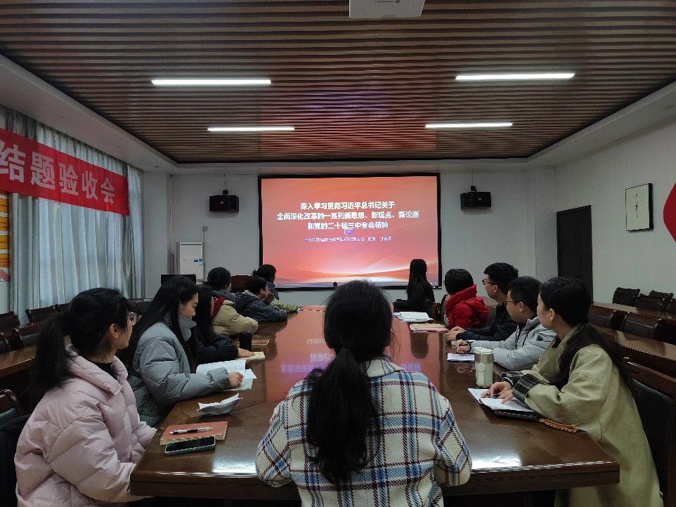 为学习贯彻党的二十届三中全会精神,把广大党员的思想和行动统一到全会决策部署上来,林学系教工党支部于2024年12月30日在林学楼会议室开展“深刻把握习近平总书记关于全面深化改革的一系列新思想、新观点、新论断及党的二十届三中全会精神”主题党日活动。