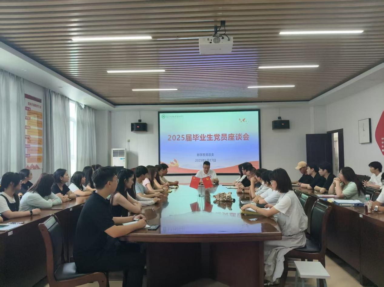 为深入了解毕业生党员思想动态,加强毕业生党员的思想教育管理与党性修养,引导其在新征程中严守纪律规矩、永葆清廉本色并发挥先锋模范作用,林学系党总支于2025年6月17日在林学楼会议室召开2025届毕业生党员座谈会。毕业班辅导员、学生党支部书记及全体毕业生党员参加了本次座谈。