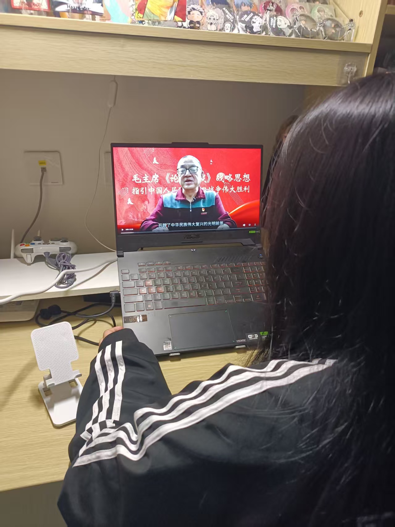 当晚,学生们分别在教室、青年大讲堂会议室、宿舍等不同场地认真学习。大家全神贯注,沉浸在历史的长河中,不时被革命先辈们的英勇事迹和伟大精神所感动。通过此次讲座,师生们不仅对毛主席的“论持久战”战略思想有了更深入的理解,也进一步增强了爱国主义情感和民族自豪感。