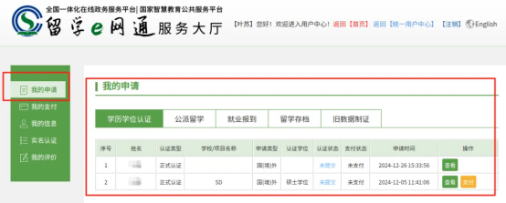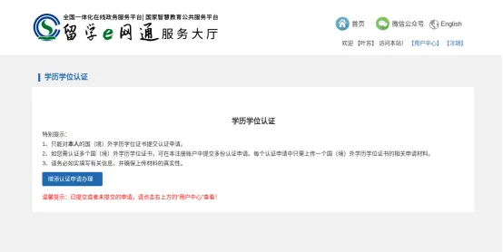 五、查询办件:申报成功的办件进入“用户中心”点击“我的申请”进行办件查询。