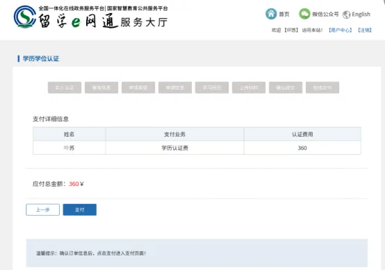 步骤8:确认信息后,点击“支付”,完成“缴费”。