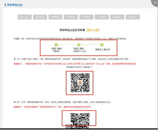 步骤3:办理认证申请,完成“实人认证”,获取出入境记录。