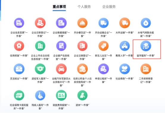 国家公派留学人员派出服务、国(境)外学历学位认证、留学人员就业报到、个人因私出入境记录查询、企业营业执照信息核验、社会保险参保缴费记录查询、个人身份信息核验(户籍信息)等8个事项集成套餐服务,实现留学服务“一件事”办理。积极推进“高效办成一件事”改革,实现群众办事“一网受理”,最大限度方便企业和群众办事,通过合并、集中、联合、同步等方式,让用户成为改革的受益者、推动者,切实提升企业和群众办事的便捷度、满意度和获得感。