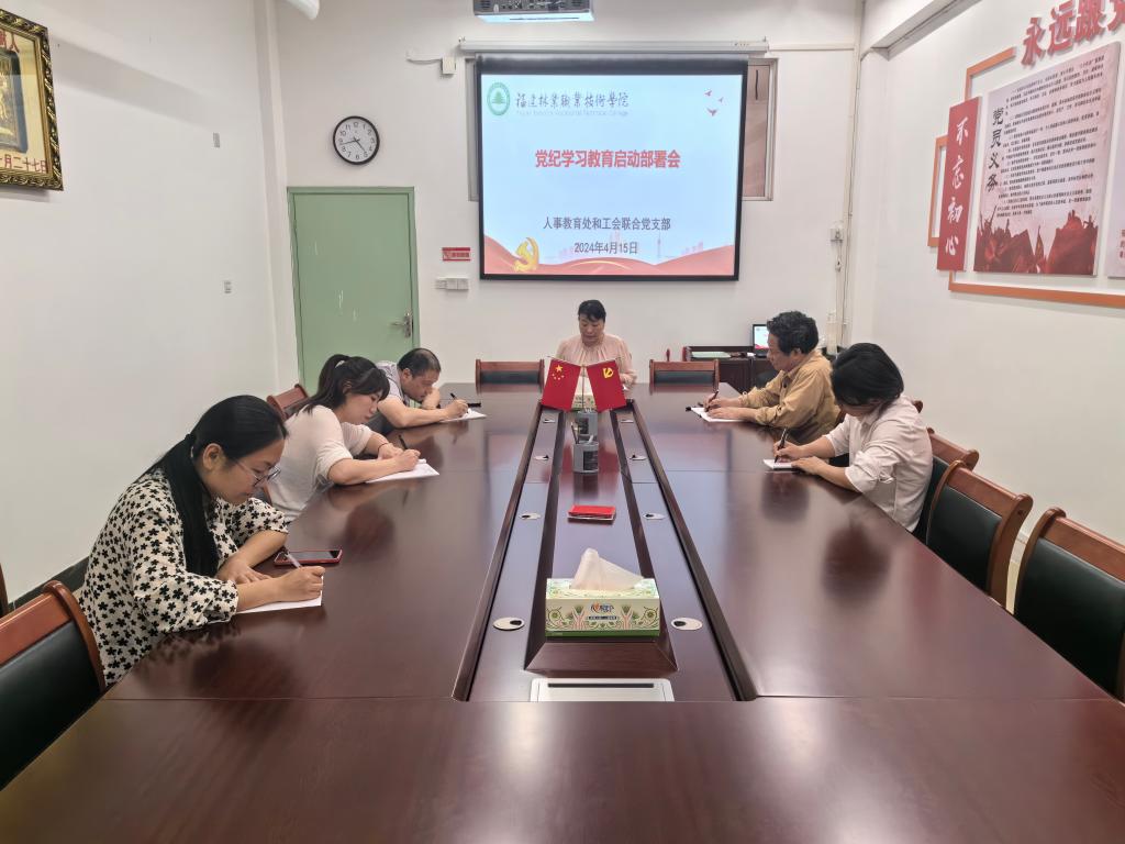 2024年4月15日,在总体国家安全观提出十周年、第9个全民国家安全教育日之际,人事教育处和工会联合党支部召开会议,传达了院党委扩大会议暨党的建设和全面从严治党工作领导小组会议内容,并深入学习了《中共中央办公厅关于在全党开展党纪学习教育的通知》。黄丽霞书记安排部署了支部党纪学习教育工作,支部全体党员参会。