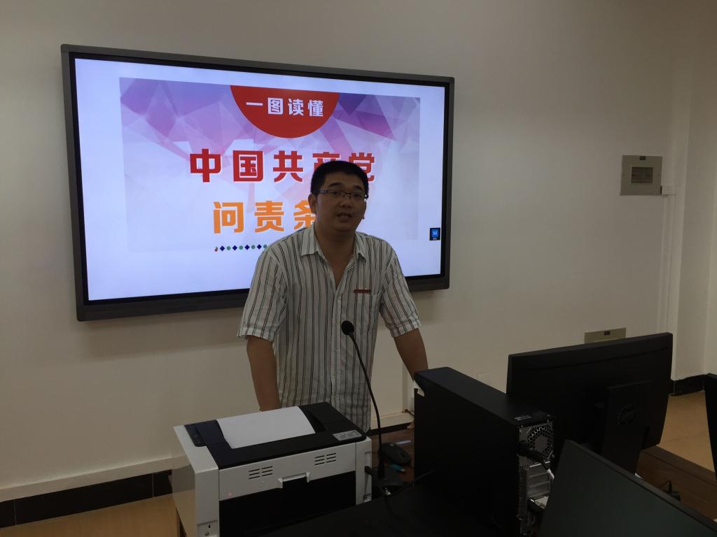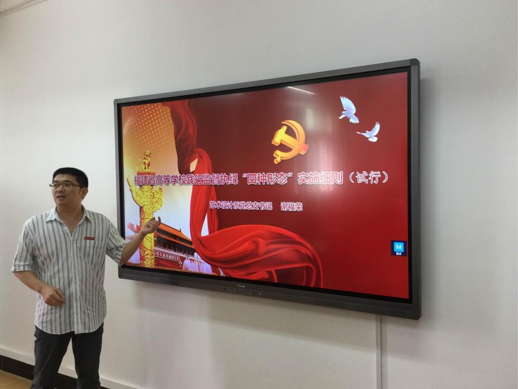 艺术设计系党总支书记谢福荣老师主持学习会并授课,对中央颁布实施的《中国共产党问责条例》(以下简称《问责条例》)和《福建省高等学校践行监督执纪“四种形态”实施细则(试行)》进行了逐条解读,同时,结合学院及系部工作实际,介绍了学习体会。