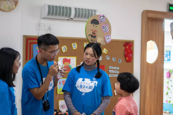 当义工团志愿者踏进教室时,就被小朋友热情活泼的气氛所感染。
