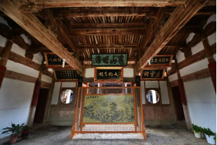 游定夫祠背依翠绿群山,面对良田溪涧,门楼为单楼八字墙式,风格古朴,梁架精美。从周围地形地貌来看,左倚狮山,右倚象鼻山,呈“金”字型,又被称为“金字祠堂”。