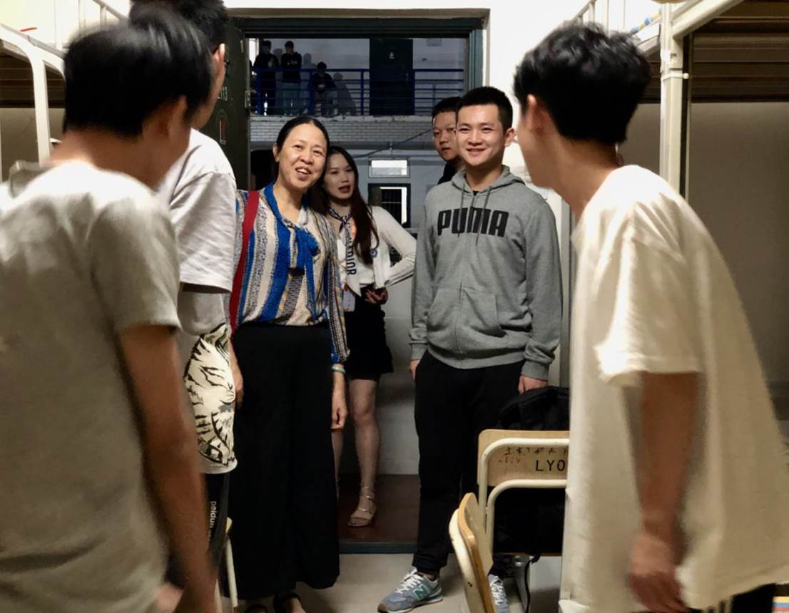 为深入了解我校新生的入住和生活情况,同时引领新生尽快适应新环境。我系本着严谨负责的态度,2020年10月10日晚上7点,罗立仪副院长、系主任曾秀云老师、系学生科长叶章球老师、辅导员雷忠春、唐婧老师及学生会代表走访新生所在的寝室,对刚入学的新生关心慰问。