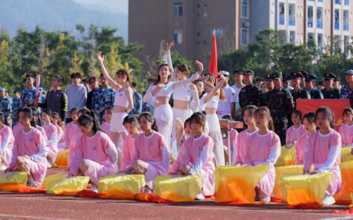 开幕式上,开场以退役军人们组成的旗手方阵,紧随其后的,是林学系、建筑工程系、艺术传媒系等七个系学生方阵依次入场,他们迈着青春朝气的步伐,向主席台稳步走来。每一个入场方阵形式精彩纷呈,表演节目别具匠心、活灵活现,充分展示了林院学子的奇思妙想、多才多艺。