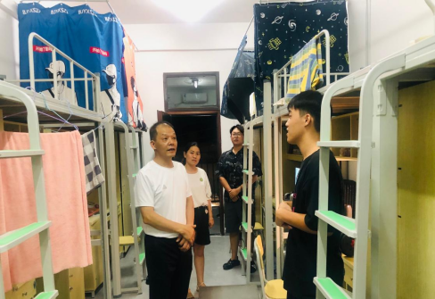 新学期伊始,为进一步做好学院常态化疫情防控工作,落实好学生新宿舍搬迁和宿舍安全管理工作,2021年9月4日、5日,院长刘文开、副院长罗立仪带领艺术传媒系党总支书记陈政、系主任曾秀云、学生科长兼团总支书记叶章球以及全体辅导员分别走访了艺术传媒系江南校区、天麟校区的学生宿舍,为学生送去关心和问候。