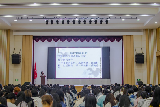 首先,叶章球老师向全体学生讲解《国家助学金评选实施办法》。国家助学金资助标准分为两档:对在校生5%左右的特困生每生每年补助4500元,对在校生15%贫困生每人每年补助2800元,有意向者可在每年九月到十月申请。