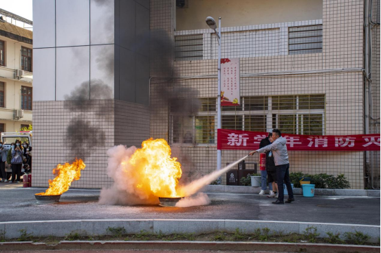 随即工作人员示意各班保卫委员上前,并指导他们如果遇到火灾该如何正确使用灭火器灭火,消防演练的过程秩序井然,一丝不紊。