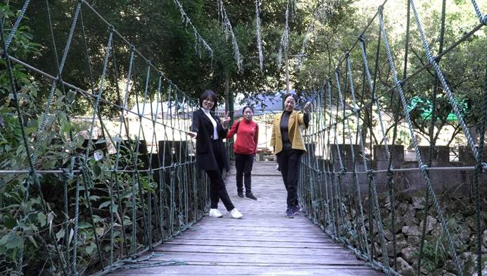 一路上,老师们边走边聊,风景美不胜收,有吊桥、有瀑布、有玉兰花、还有珍贵飞禽。