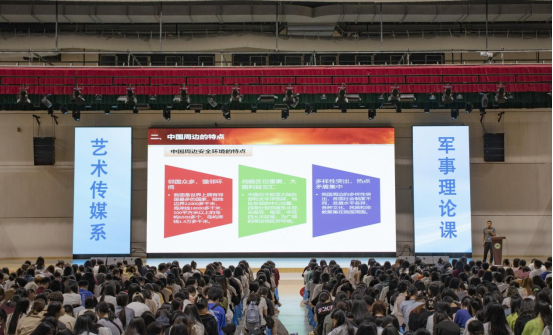 为进一步提升2022级新生军事综合素质,增强同学们对军事知识的了解与认识,弘扬和传承爱国主义精神,2022年9月26日晚上七点,艺术传媒系在江南体育馆一楼举行以军事理论及形式与政策教育为主题的2022级新生入学教育讲座。系学生科科长兼团总支书记廖士喜担任主讲老师。