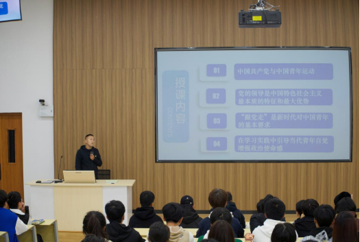 廖士喜老师从中国共产党与青年运动、党的领导是中国特色社会主义的最本质特征和最大优势、“跟党走”是新时代对中国青年的基本要求、在学习实践中引导当代青年增强政治使命感四个方面展开课程。在课上,廖士喜老师强调,当代青年学生应提高综合素质,不断促进德智体美劳全面发展。
