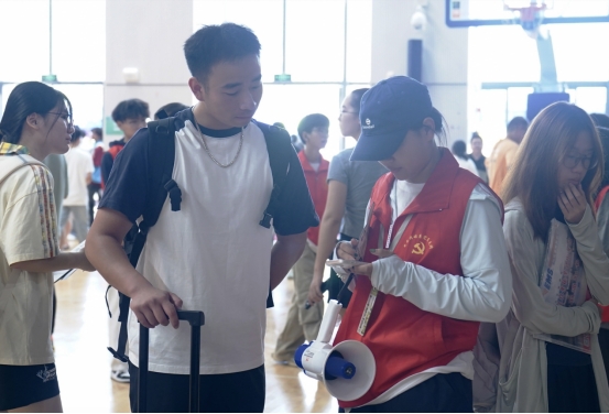从清晨到夜晚,延平站台上总能看到一枚枚闪亮的党员胸牌。党员先锋岗成员提前调研到站车次,分时段精准安排接站人员,举牌等候、主动问询、协助联系。对独自来校、行李繁重的新生,党员先锋岗全程陪同直至体育馆门口。新生纷纷表示:“一下车就看到党员先锋岗的老师和同学们,心里一下就踏实了。”
