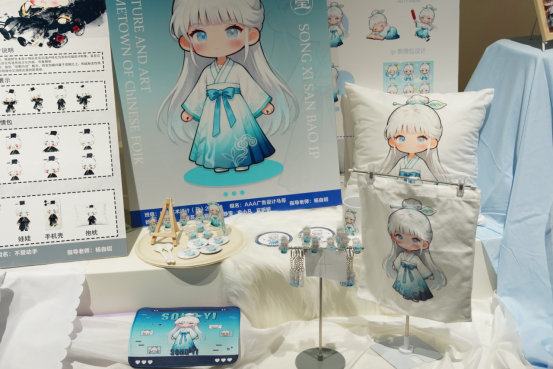设计说明:该IP形象以Q版水墨风格呈现,身着黑金汉服,头戴插有湛卢宝剑的传统冠帽,白发动人,融合松溪历史底蕴与湛卢剑文化,萌趣且具文化辨识度。
