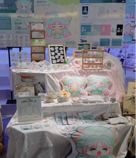 设计说明:本次设计以松溪非遗文化和九龙窑青瓷器为主题。松溪九龙窑瓷器烧制始于晚唐五代,以青瓷为主。因此我们IP形象的衣物颜色提取了九龙窑特有的釉色——青绿色和淡青色的混合色,裙摆花纹则采用冰裂纹。而头上配饰取自松溪县花——福建山樱,山樱花的花语和寓意丰富多样:坚强不屈、希望与新生、勇敢追求自由。我们设计的IP形象更是希望给人带来一种活泼可爱的感觉。我们LOGO以松溪非遗九龙窑瓷为核心,主体选取青瓷瓶为造型原型,展现九龙窑瓷的“器物属性”。瓶身巧妙嵌入“九”的同音字“玖”和“龍”的繁体字字样,将品牌名称与瓷器器型深度融合,助力九龙窑瓷从地域非遗走向更广阔的受众视野。