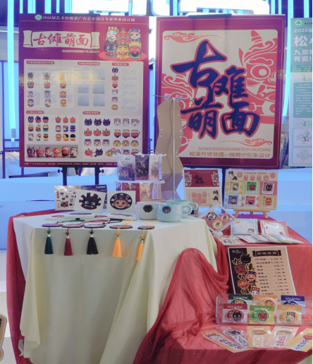 设计说明:该作品以松溪竹贤傩舞的几个代表角色为灵感,将面具形象Q版化,结合不倒翁的形态,在不失去本身特色的同时具有现代特点。