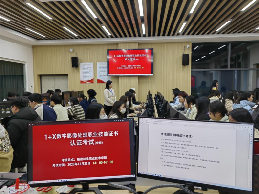 2023年12月22日下午,艺术传媒系在艺术楼201、203开展1+X数字影像处理职业技能等级证书认证考试。来自广告艺术设计、数字媒体艺术设计和新闻采编与制作三个专业的同学共106人参加了本次考试。