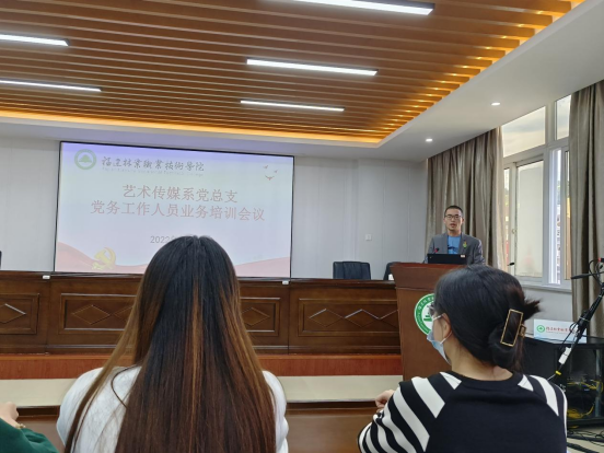 面对新形势下党建工作的新要求,为进一步做好党务工作,努力建设一支高素质的党务工作者队伍,发挥党组织的政治引领和战斗堡垒作用,2022年11月8日下午,艺术传媒系党总支在江南校区行政楼六楼会议室组织开展党务工作人员业务培训。本次专题培训由系党总支书记陈政主持,专职组织员欧阳昭勇作具体培训。系党总支副书记叶章球,教工党支部书记徐豪、宣传委员兼青年委员乐丽燕、组织委员兼纪检委员马睿,学生第一党支部书记孙文欣,学生第二党支部书记宋慧敏以及系党总支党建服务中心党建学生助理参加了此次培训活动。