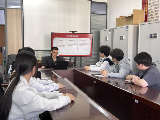 “组织永远是大家最坚实的后盾。”在组织帮扶环节,支部书记路雨霏向全体党员明确服务保障举措。党员在备考、实习期间若遇到复习压力过大、加班超时、实习协议纠纷、生活房租压力等问题,可随时联系辅导员或支部书记,心理老师、就业老师将第一时间提供针对性支持,为党员排忧解难。