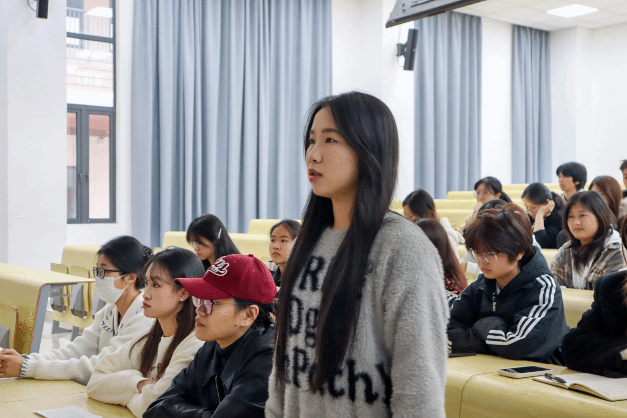 在交流分享环节,教师党员与学生代表结合自身身份谈感悟、话担当。教师党员吴梦凡聚焦“坚持党的全面领导”,表示将深化对“两个确立”的理解,增强“四个意识”、坚定“四个自信”、做到“两个维护”,把全会精神融入党员教育和教学工作,以师德师风言传身教引导学生锚定人生方向。入党积极分子苏艳婷谈到,通过学习深刻认识到党的领导和制度优越性,将从强化理论学习、参与志愿服务、勤奋学习助人三方面发力,以实际行动争取早日入党,为“十五五”发展贡献青春力量。