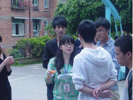 下午14:30分,活动拉开了帷幕。最让同学难以忘怀的是“瞎子喂蛋糕”,游戏规则为:成员A带着眼罩坐在桌前(终点),成员B手持蛋糕指引带着眼罩的成员C从起点到终点,并从成员A背后喂其吃蛋糕,淘汰时间最长一组。整个场面惊心动魄,又是喧哗、又是高呼,摄影组的争先拍下这场面。在长达一个多小时,终于来到最能挑战参赛者的肺活量-----吸雪碧,顾名思义为每组各有3杯雪碧,要求组员从起点跑到终点,一个接着一个用吸管吸完,时间最短的三组获胜。