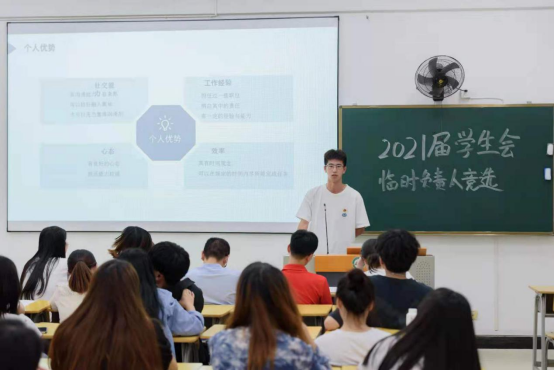 为巩固艺术传媒系团委、学生会组织,顺利实现新老学生干部交接,保持学生干部队伍的稳定性和延续性,推进学生自主管理,2021年6月17日晚上,福建林业职业技术学院艺术传媒在江南校区实训四举行团委学生会换届竞选演讲大会。艺术传媒系党总支书记陈政、学生科长兼团总支书记叶章球、专职辅导员唐婧、雷忠春、孙文欣、李延卿等6位老师以及主席团负责人、各部门现负责人到场担任评委。