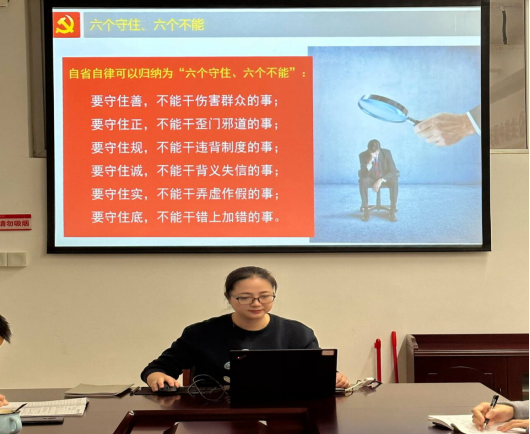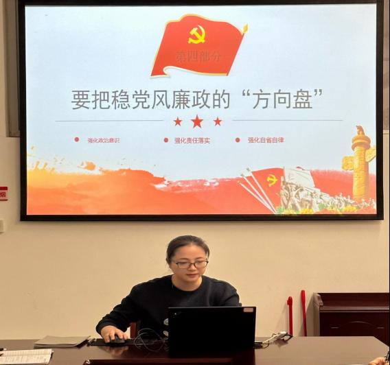 为扎实推进学习贯彻习近平新时代中国特色社会主义思想主题教育走深走实,进一步提升党支部的凝聚力和战斗力,2023年12月1日下午,招生就业处党支部书记陈莉老师为招生就业处党支部全体党员上题为“坚持党性原则 涵养清风正气”的党员廉洁教育党课。