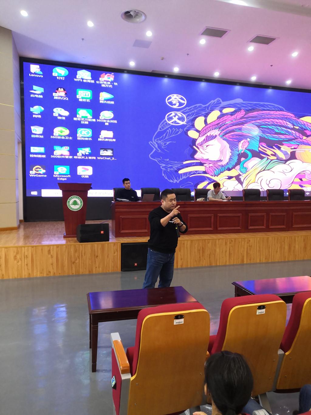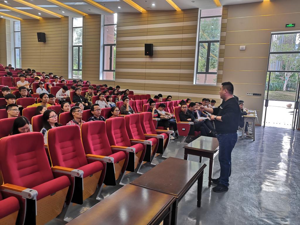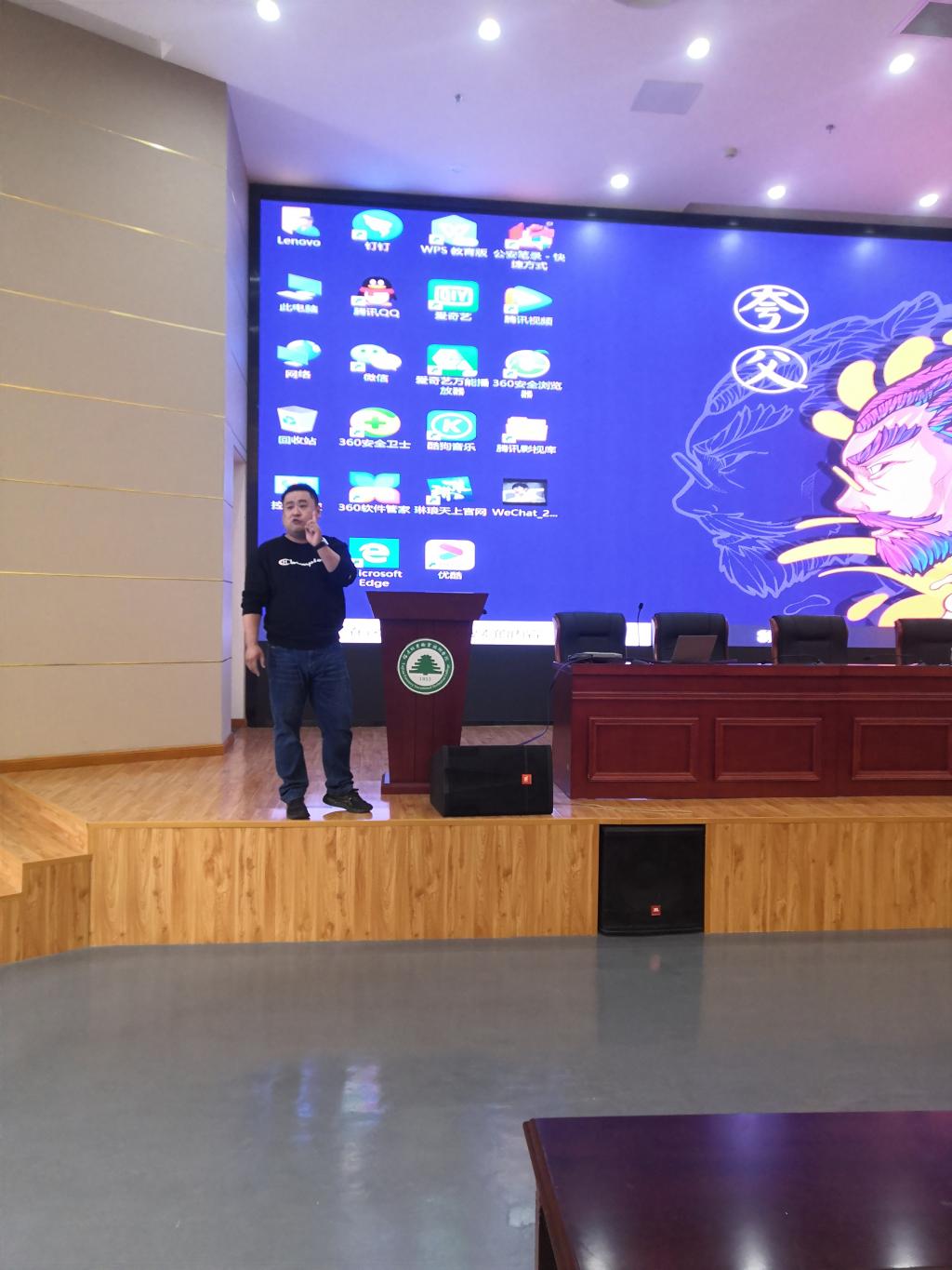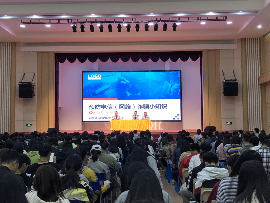116日晚,在天麟校区礼堂由扫黑办蔡众警官为经管系、艺术系学生开展防范电信诈骗安全教育活动。