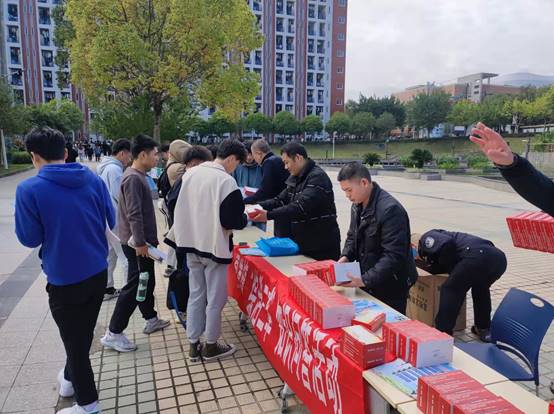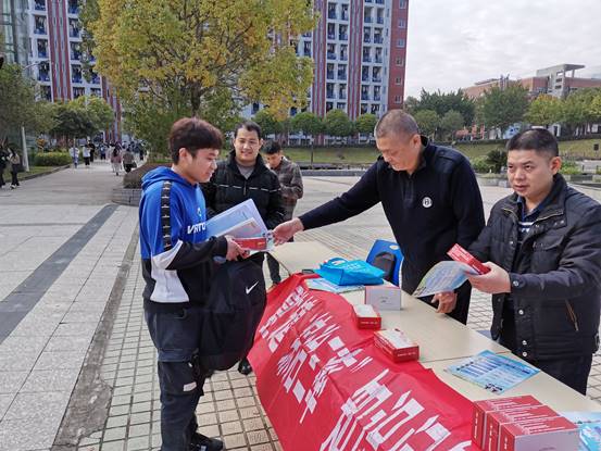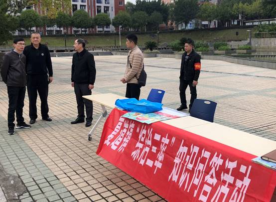 学院党委副书记严绍裕老师、副院长谢金生老师到现场热情参与了平安“三率”宣传活动。