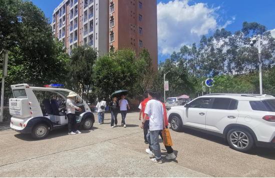 迎新当天,安全保卫处在学校大门、南门、校园新生报到点及校内各路段安排执勤人员,对迎新区域进行车辆管制,并积极与属地公安机关沟通协调,协助做好学校周边道路交通秩序、校园及周边治安管理、应急情况处置等工作,全力保障迎新工作顺利进行。交警同志在学校正门及周边道路疏导交通;安保处工作人员及保卫部学生志愿者在校内主干道维护秩序。日光下,他们身着制服,坚守岗位,在校园内形成了一道亮丽的风景线。