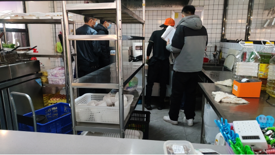 检查人员实地查看了食堂环境卫生、配餐操作、备餐间食品存储条件等,查阅了食品原料进货渠道和进货台账、消毒台账等,严格排查是否存在“三无”及过期食品。严查食堂消防安全规章制度执行情况、消防设施管理、安全出口和疏散通道的畅通情况等,并做了现场检查记录。