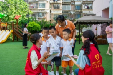 演习结束后,志愿者分组行动,向小朋友和教职人员分发消防安全宣传单,并结合图文案例讲解日常安全要点:包括“不玩火、不乱接电线”“认识消防器材”“发现火情如何报警”等内容。针对幼儿认知特点,志愿者通过情景问答、安全儿歌等形式,将专业严谨的消防知识转化为生动有趣的互动体验,有效提升了幼儿园整体的安全防范意识。