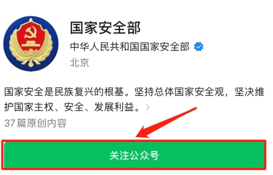 在微信中搜索“国家安全部”微信公众号,点击关注即可。