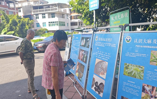 活动伊始,安保处工作人员、辖区民警及志愿者通过发放禁毒宣传页、布置禁毒知识展架、现场展示仿真毒品模型等形式,向辖区民众普及禁毒知识、阐述涉毒危害、展示防毒拒毒技巧,并提醒大家要谨慎交友和警觉戒备的认识,不要进入治安复杂的场所,提高对诱惑的警惕性。
