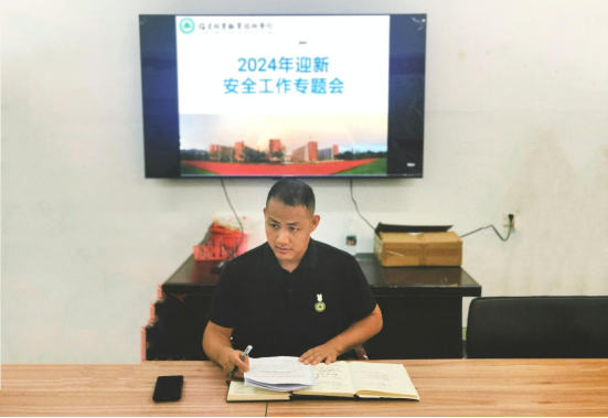杨峰副处长对2024年秋季开学迎新安全工作做出以下部署:一是落实迎新期间门卫管理工作,加强校园门口安全秩序管理,严格把控入校人员,确保校园安全稳定;二是维护迎新现场秩序,严禁擅自在校园内摆摊设点及促销、兜售行为,防止发生欺诈、伤害学生等行为;三是迎新期间加强交通疏导,以及对车辆通行、停放的规范管理,引导新生报到家长车辆按要求有序进出校门;四是做好迎新期间校园治安巡逻和安全防火工作;五是配合公安机关维护校园周边交通安全;六是加强视频监控室的值班,及时处理突发事件;七是天麟校区迎新专车,按要求进入校门,并按指定地点停车。送新生报到家长车辆根据现场指挥,进入校门。