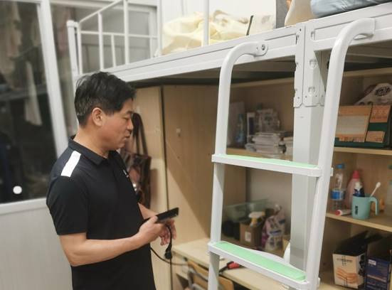 本次学生宿舍安全卫生检查,不给学生打招呼不下通知,采取了直接到宿舍的方式。重点围绕学生宿舍消防安全、违章电器、管制刀具等情况开展,及时了解和消除学生寝室的安全隐患,防患未然。通过对学生宿舍逐一的走访、排查发现,学生宿舍安全卫生整体情况较好,学生普遍能够遵守宿舍安全管理规定。但也有部分宿舍存在使用违规电器的情况。检查组对违规使用的大功率电器予以没收,并对学生进行批评教育,再次强调大家要营造良好的宿舍安全氛围,严格遵守学校规定,处理好个人卫生,加强安全防范意识。