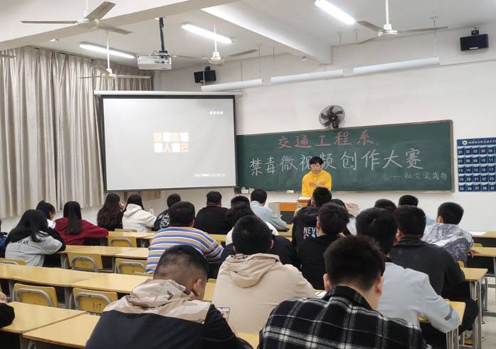为进一步加强预防毒品教育工作,扩大禁毒宣传的覆盖面,进行全民禁毒,提高青少年的禁毒意识,交通工程系于20191120号晚上19:30在实训四411开展了“禁毒微视频创作大赛”。