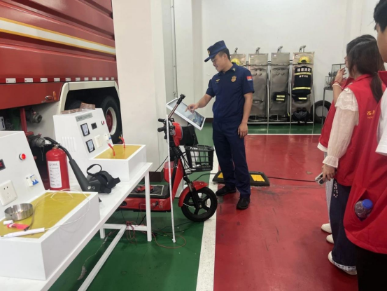在消防科普教育基地,志愿者们近距离观摩水罐消防车、抢险救援消防车、举高喷射消防车等特种车辆。宣讲员详细讲解不同车型在高层救援、化工灭火、水域抢险等场景的专业用途。参观过程中,志愿者就“消防机器人的应用场景”“个人防护装备的承重标准”等问题积极提问,消防员以“装备博物馆”式的讲解,让大家直观感受到现代消防救援的专业化与智能化。
