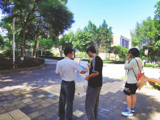 “平安三率”分别为群众安全感率、扫黑除恶好评率、执法满意率,是衡量平安建设成效的重要指标。活动现场,安保处组织学生志愿者采用“定点宣传+流动宣讲”模式,不仅在校园主干道向师生发放平安建设宣传单,详细解读新时代平安校园建设的具体要求,还特别组织志愿者开展进宿舍宣传行动,面对面讲解平安创建知识,针对宿舍用电安全、网络诈骗防范等高频问题进行重点科普。同时,工作人员向师生发放“平安三率”调查问卷,广泛收集对校园安全管理、执法服务等方面的意见建议,累计回收有效问卷300余份。