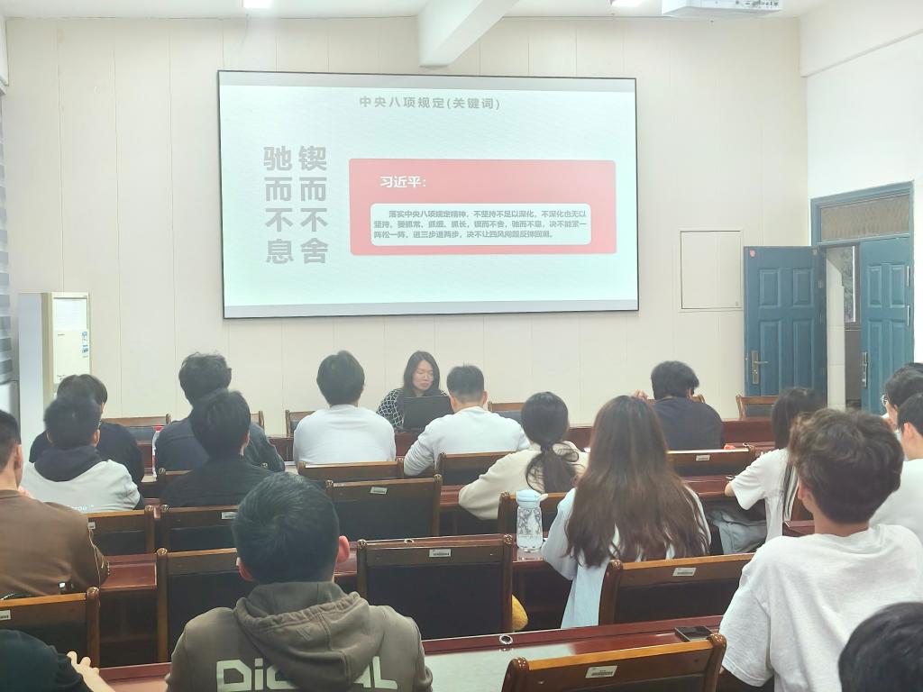 中央八项规定自出台以来,始终是党风廉政建设和反腐败斗争的重要制度保障,为深入推动中央八项规定精神深入人心,引导师生党员增强党纪意识,强化廉洁自律,2025年5月29日,信息工程系学生第二党支部开展了主题为“学中央八项规定精神,促清廉作风建设”的专题党课,党课由党支部书记陈雅佳老师主讲。