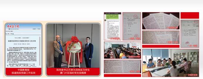 着力创新全过程育人载体。一是上好入学第一课。建立“新生开学第一堂思政课”,引导大学生“扣好人生第一粒扣子”。二是建好实习期间思政工作机制。推行学生党员顶岗实习“互联网+思政、朋辈1+10、思政导师制”的思政模式和学生党员顶岗实习“八个一工程”,即一次组织谈话、一份思想汇报、一次组织生活会、一次专题党课、一党员一考核、一实习一总结、一季度一汇报、一月一活动,做到“党员走到哪里,支部建到哪里”。三是占好宿舍思想阵地。实施“五进宿舍工程”,即思政教育、党建工作、行为养成、专业技能、心理教育进宿舍,落实落细三全育人。《思政扎根宿舍,思想引领成长》入选第二批福建省大学生思想政治教育创新示范项目。