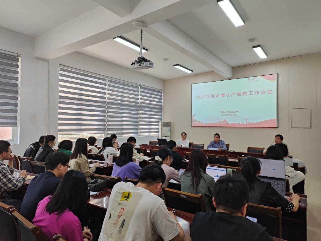 2025年3月25日下午,信息工程系党总支在信工楼408会议室召开2025年度全面从严治党工作会议,系部全体教职工参加了会议,会议由系党总支书记、主任华建祥主持。